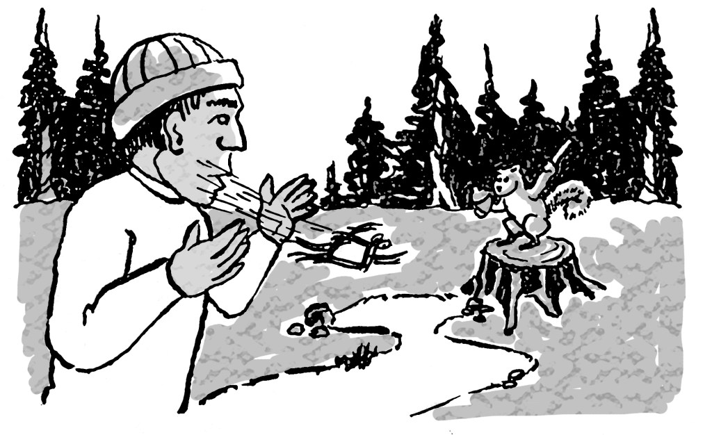 “Oh, I see you’ve gone hunting with your daddy and know what that means. Yes, I had to pee. Anyway, while I was ‘watering the tree,’ I spotted a squirrel about 20 yards away, standing on a stump. In its hands, he was holding a stick and an acorn, and he was staring me down, something fierce.”
