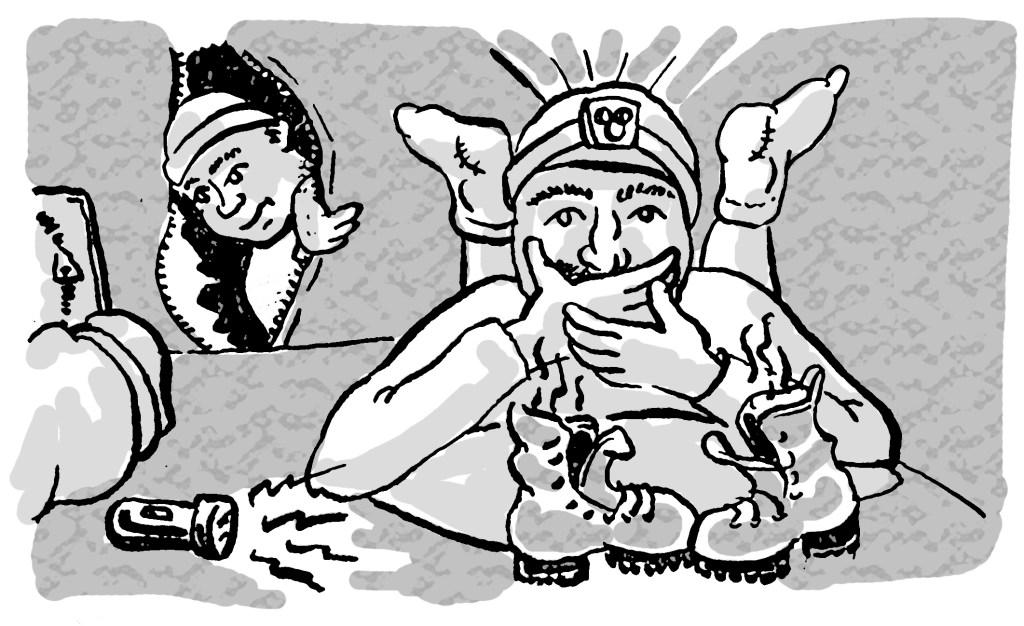 ‘So, what did your brothers say about me joining the hunting party tomorrow morning?’ came the same wispy voice I was fearful of hearing again. As I turned on my headlamp and sat down on my sleeping bag in my tent, I turned my head toward the location of the voice. There, I saw my beard standing on my pillow, furry hands on furry hips, tapping his furry toes with impatience. ‘Um, hey!’ I said sheepishly. ‘I didn’t expect to see you so soon.’ ”